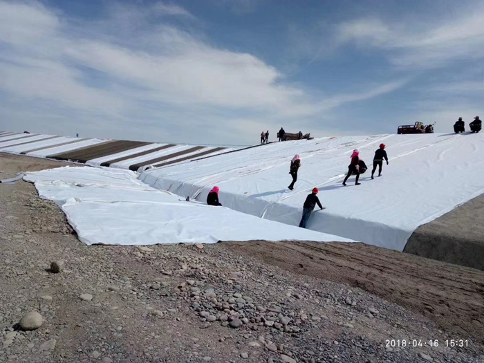 土工布作為土工膜的保護層,使保護防滲層不受損壞。為減少紫外線照射,增加抗老化性能,更好采用埋入法鋪設。材料自身的連接,防滲薄膜的連接方式可歸納為三種,即粘結法、焊接法以及硫化法,視防滲薄膜的原材料的不同而選擇,所有連接縫的抗滲性能均應進行檢查,以防接縫連接不好而滲漏。我司有專業的施工團隊,現場施工、現場指導安裝。